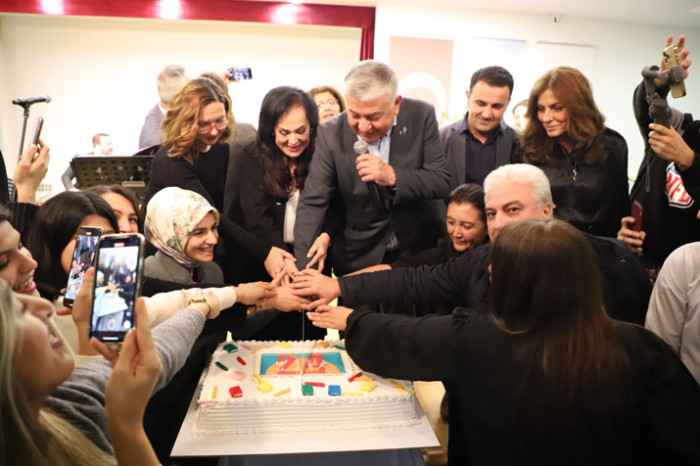 Türk Sineması’nın sultanı Türkan Şoray ile etkinliğe katılan Başkan Şükrü Genç öğretmenlerle birlikte pasta kesti, şarkı söyledi.