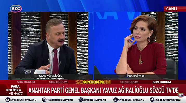 Anahtar Parti Genel Başkanı Yavuz Ağıralioğlu, Sözcü TV canlı yayınında gazeteci Özlem Gürses’in sunduğu Para Politika ve Hayat programına konuk oldu.